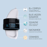 BL+ COMPLEX combines the restorative forces of patented Blue Lagoon Microalgae and Silica with an advanced delivery system designed to penetrate deep into the skin. BL+ COMPLEX stimulates collagen synthesis, prevents collagen breakdown, and strengthens the skin barrier.